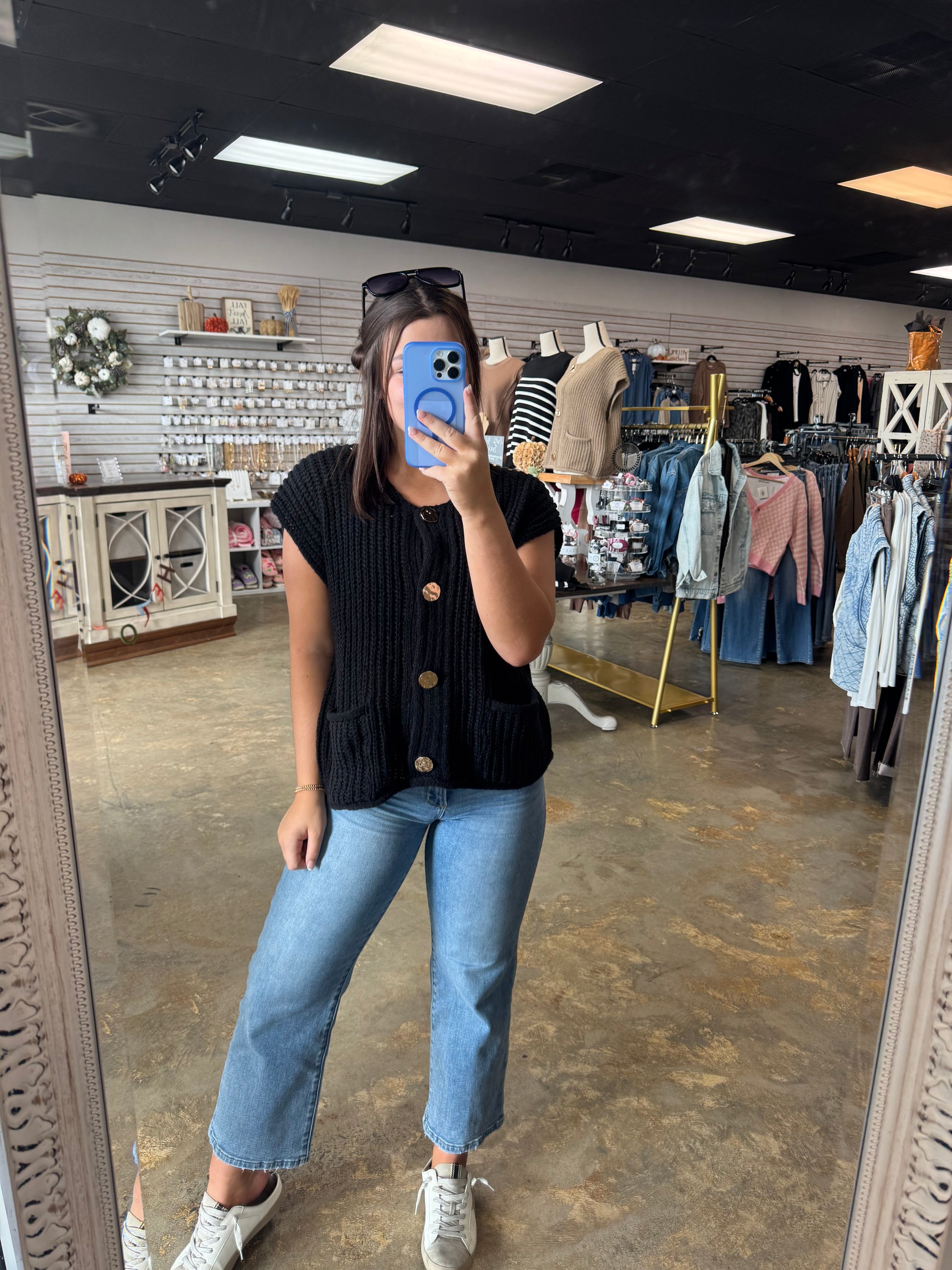 A timeless layering piece, this button-front sweater vest features a cozy knit design with a classic silhouette. Perfect over a blouse, tee, or dress, it adds just the right touch of warmth and effortless style to any outfit.