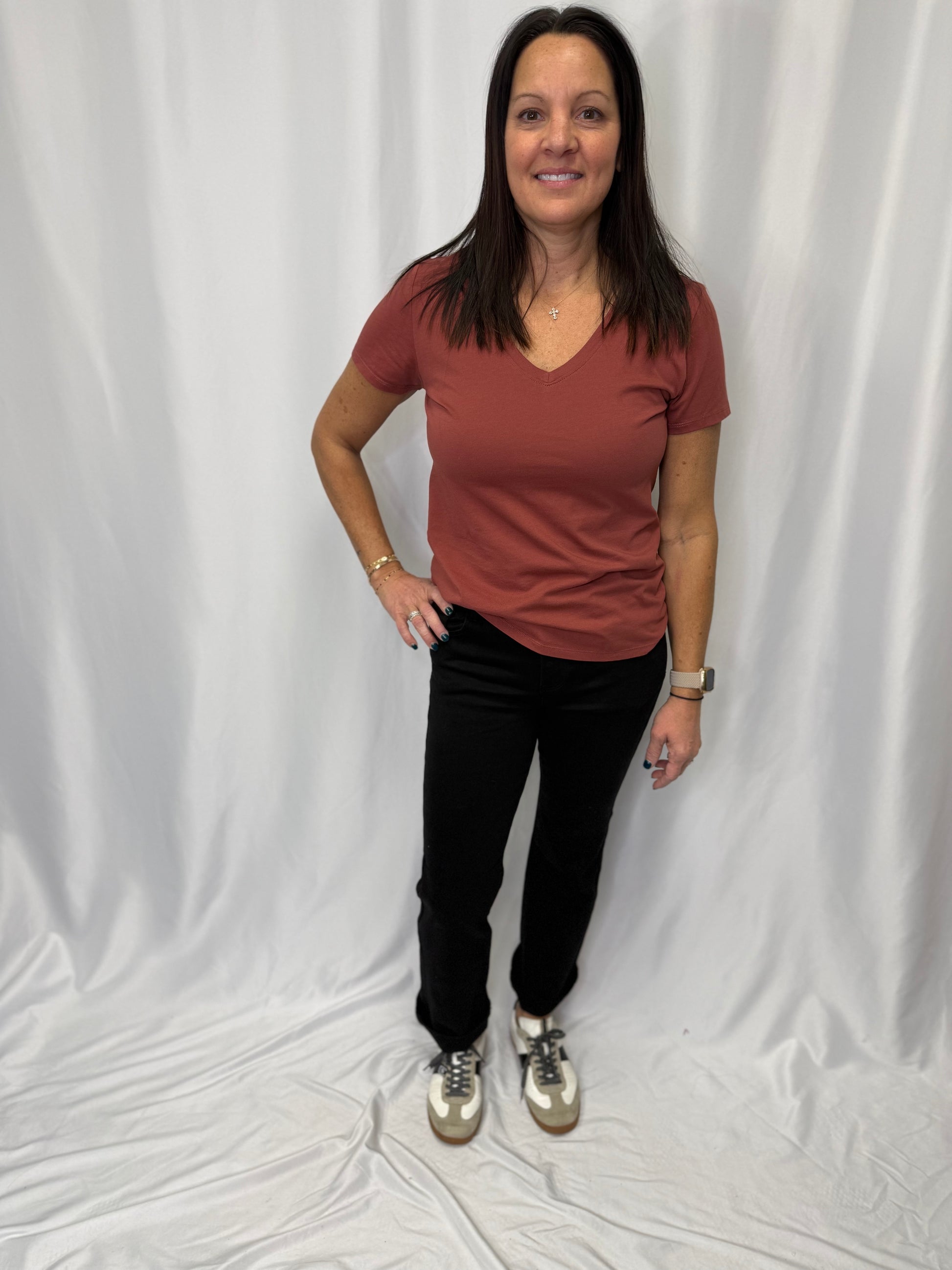 Simplicity never looked so good—meet your new favorite Cotton Jersey V-neck Tee. This wardrobe essential combines soft, breathable cotton with a flattering V-neckline that works for everyone. Lightweight and versatile, it's the perfect canvas for layering or wearing solo. Dress it up with a blazer, keep it casual with your favorite jeans, or throw it under a sweater for extra coziness. It's the kind of reliable piece you'll want in every color. Effortless style starts here.
