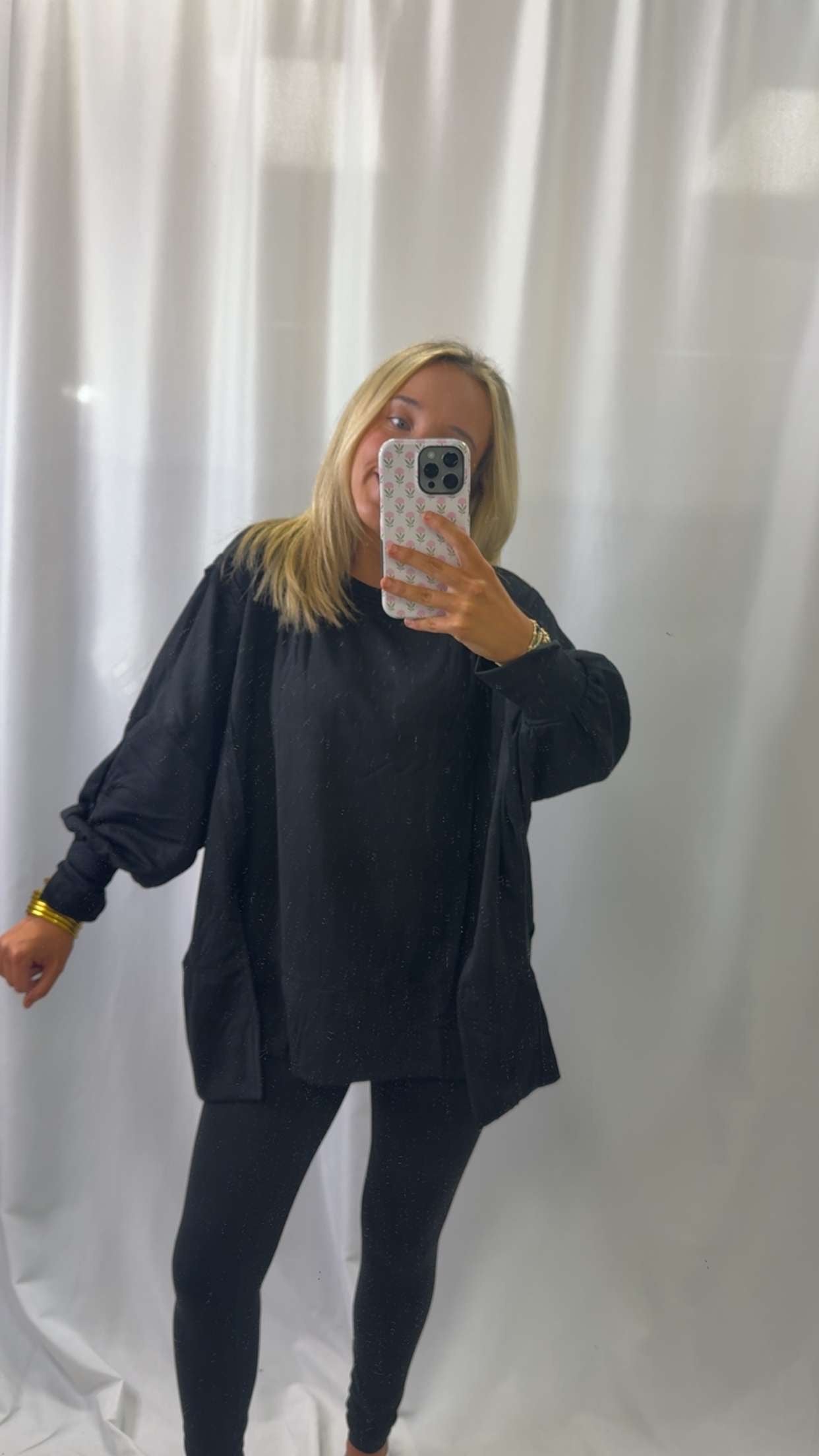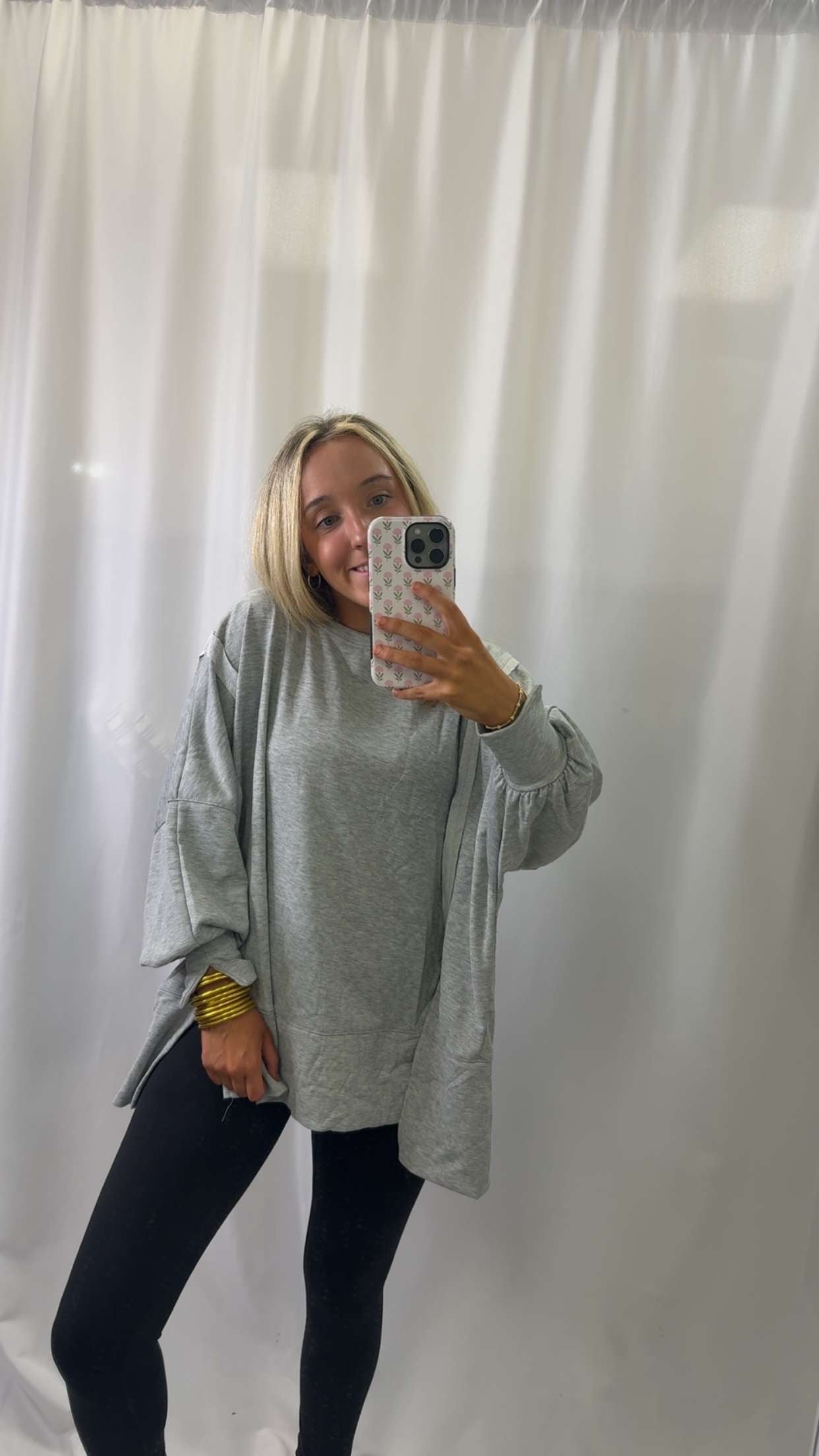 Embrace comfort with a twist in this oversized long-sleeve top, featuring playful unique cuffs that add just the right amount of flair. Perfect for cozy days or casual outings, its relaxed fit lets you move freely while the standout cuffs catch every eye. Effortless style meets unexpected detail—get ready to turn heads!