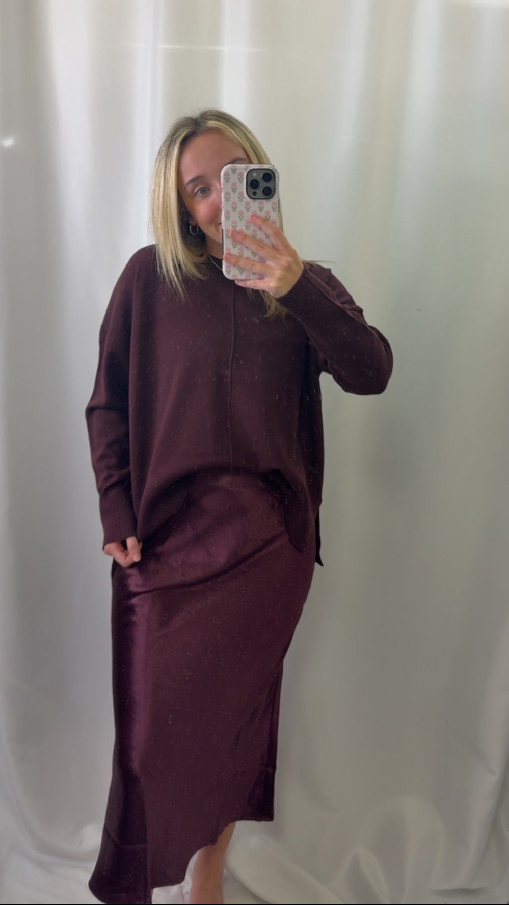 Meet your new go-to skirt. This high-waist satin A-line midi hits just right—flattering your waist and flowing away for an easy, comfy fit. The smooth satin gives it a little shine, so you can dress it up or keep it chill for everyday vibes. Perfect for when you want to look put-together without trying too hard.