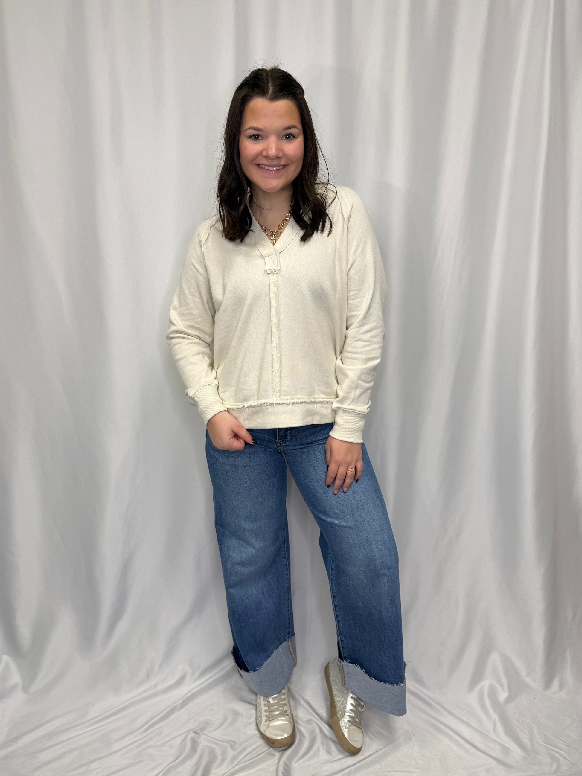 Get ready to turn heads with this Hooded V Neck Raw Edge Top—where edgy meets cozy in the best way possible. The raw edge detailing adds an undeniably cool factor, while the hooded design keeps things functional and fun. The flattering V-neckline balances the relaxed vibe perfectly, making this top work for casual hangouts or dressed-up occasions. Soft and comfortable, it's the kind of piece that makes a statement without trying too hard. Your new favorite top just arrived.