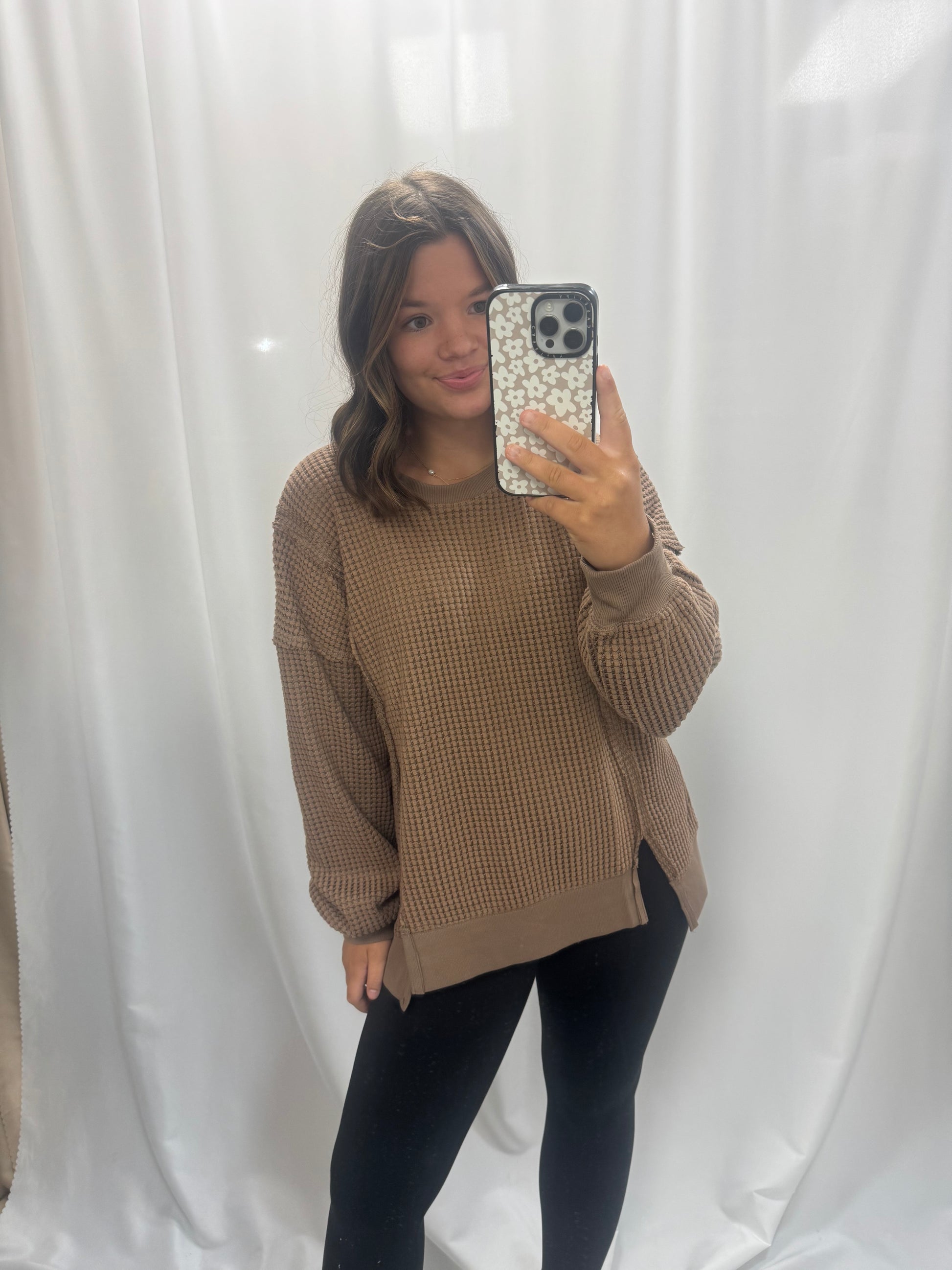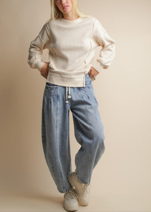 Oversized Waffle Knit Casual Top