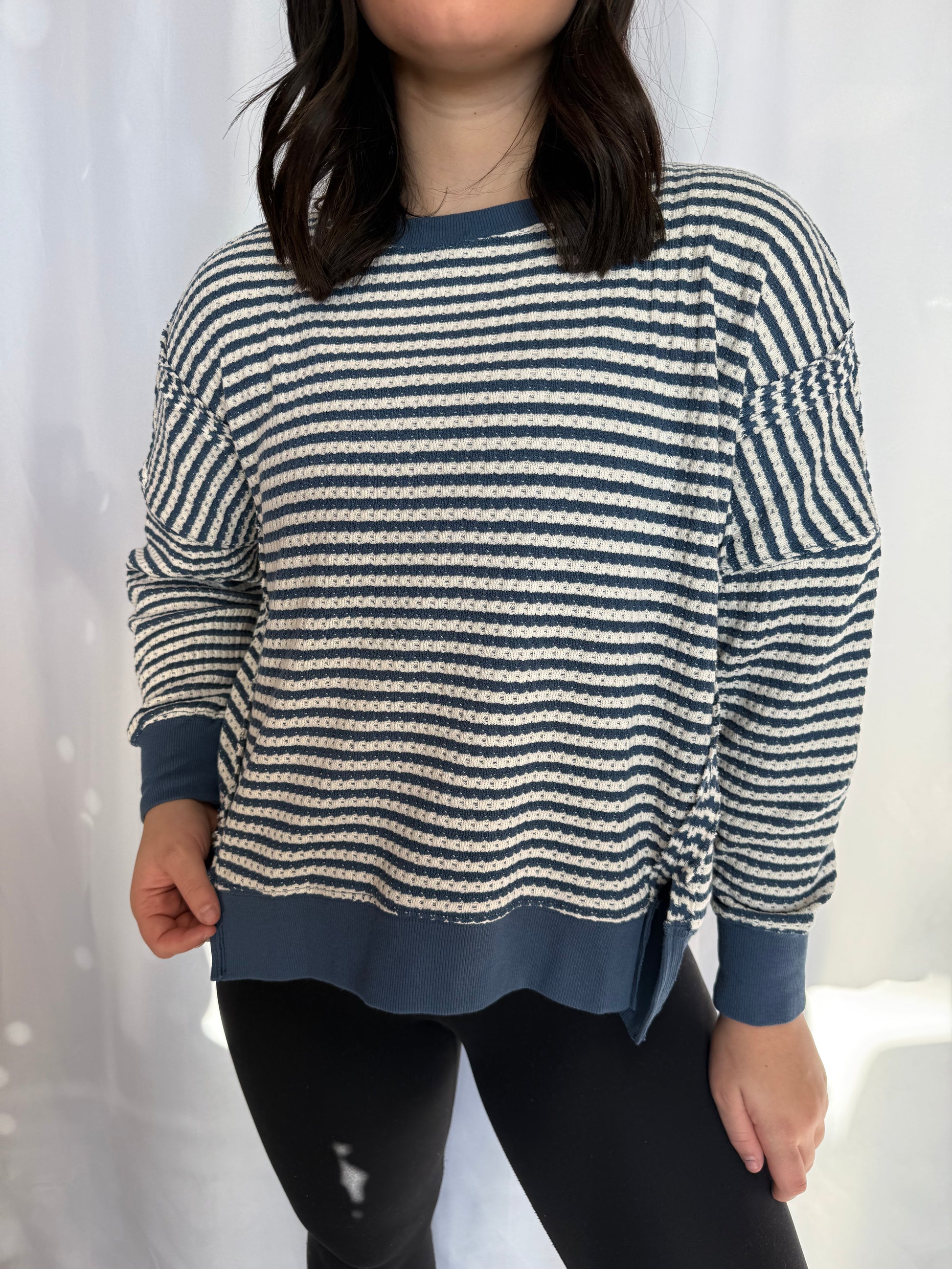 Introducing the Stripe Exposed Seam Top—where minimalist design meets maximum style points. The clever exposed seams add an architectural edge to this striped essential, giving it that "I know fashion" factor without trying too hard. Lightweight and easy to wear, it layers beautifully or stands solo as your new favorite basic-that's-anything-but-basic. Pair it with your go-to bottoms for instant polish, or get creative and mix it with unexpected pieces. This top proves that sometimes the smallest details make the biggest impact on your overall vibe.