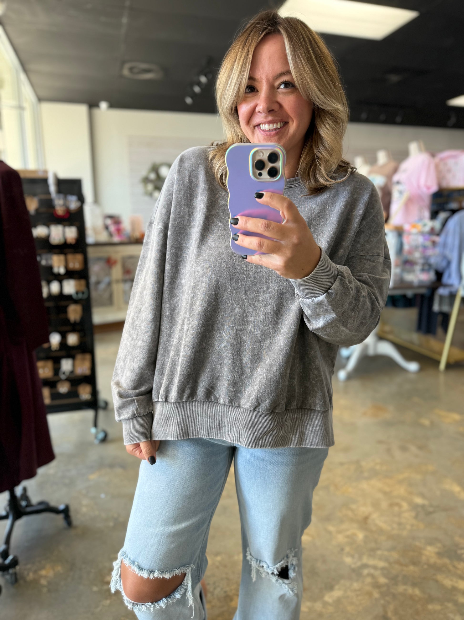 Get ready to turn heads in the Washed Side Split Top — effortless style with a cheeky twist. Its relaxed fit and side splits give you the perfect breeze and freedom to move, while the washed finish adds a lived-in cool vibe. Pair it with your favorite jeans or skirt for a playful day out or a casual night in. Stylish comfort never felt so fun!